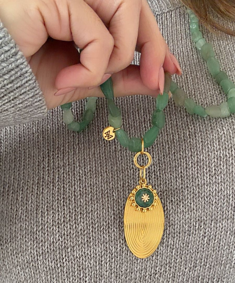 Un collar delicado y lleno de energía, elaborado con cuarzo natural en forma alargada que aporta un toque sofisticado y místico.